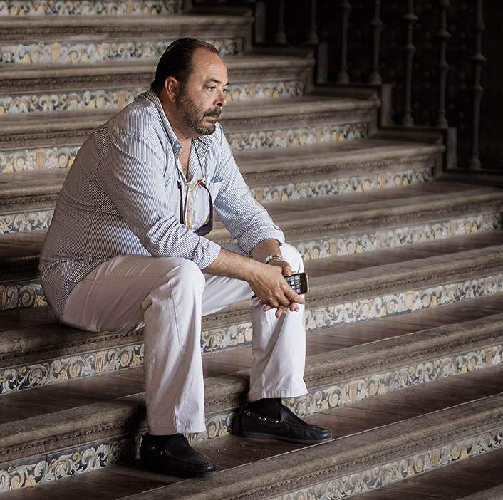David, I love the image and what you did with it. Not only does the man's expression convey what he's feeling, but the lines of the steps and rail provide an interesting (but not distracting) background.