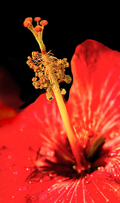 Barbara, removing the white behind the base of the stamens REALLY made a huge difference since it immediately attracted the viewer's eye. Also, eliminating the green in the background allowed the stamens to be the center of attention. Additionally, brightening the stigma (if that's what it's called) really made it "sparkle".