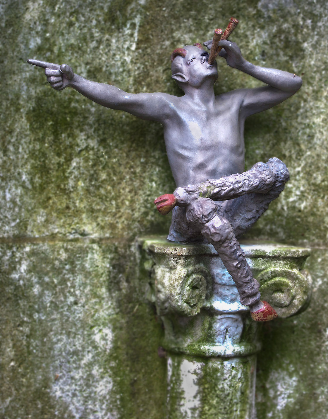 David, I've incorporated many of your comments in the image below. I also added just a touch of additional light to Pan's face and a few of the darker areas of his body.