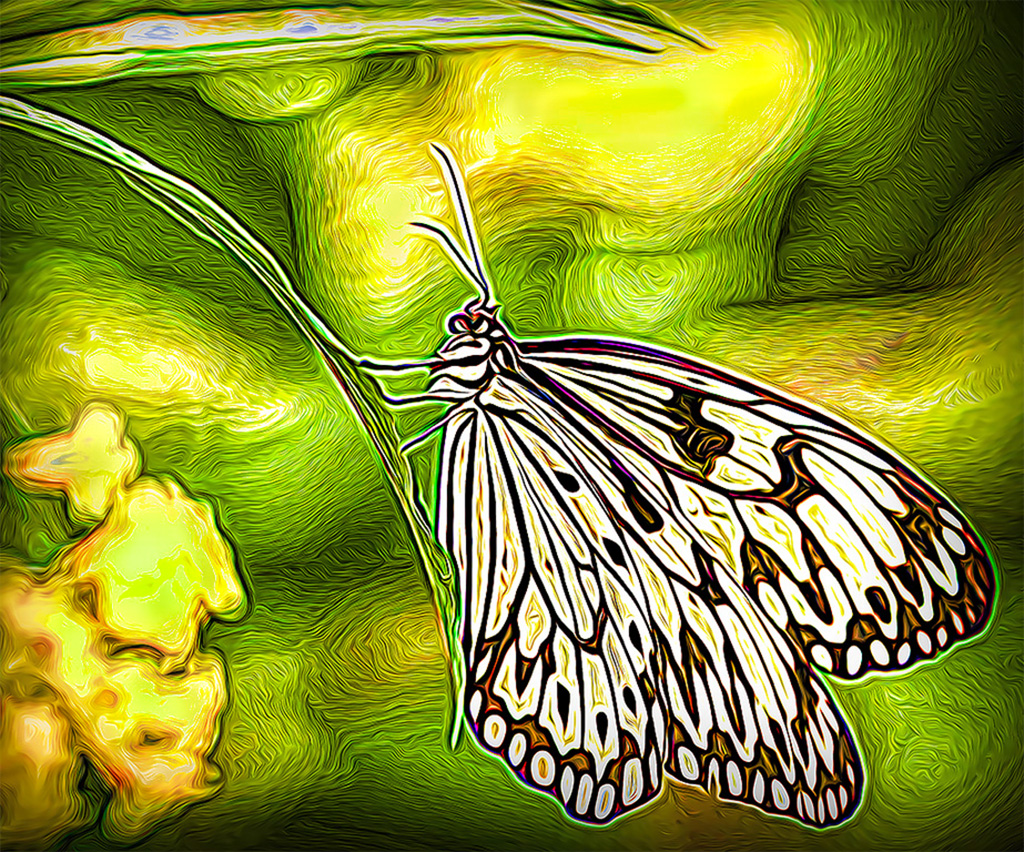 Some pictures just don't work and I'm afraid this is one of them. The original was "just a boring butterfly" photo but, you're right, the filters don't seem to create the abstract I was trying for.