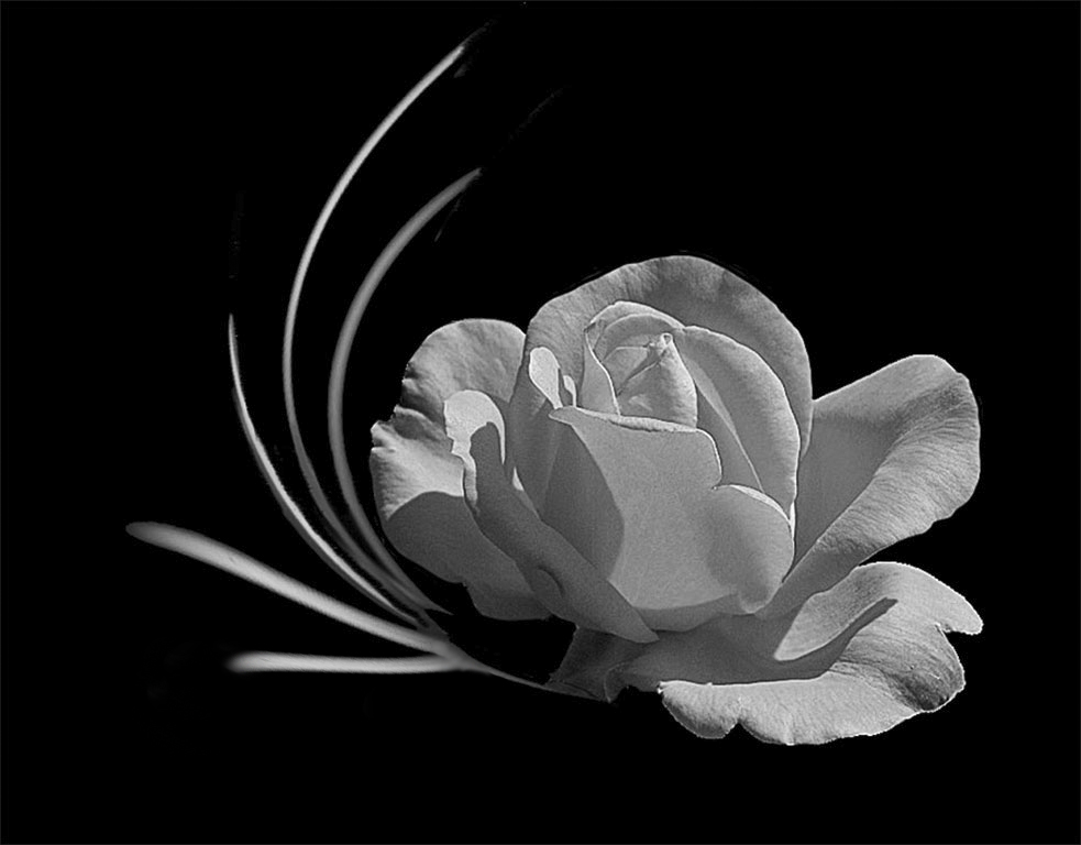 I like this one best. It has the beautiful soft shading on the rose and the OOF leaf resolved. I especially like the downward curve of the leaf that you added since is nicely balances the upward curves of the longer leaves. Nicely done. |