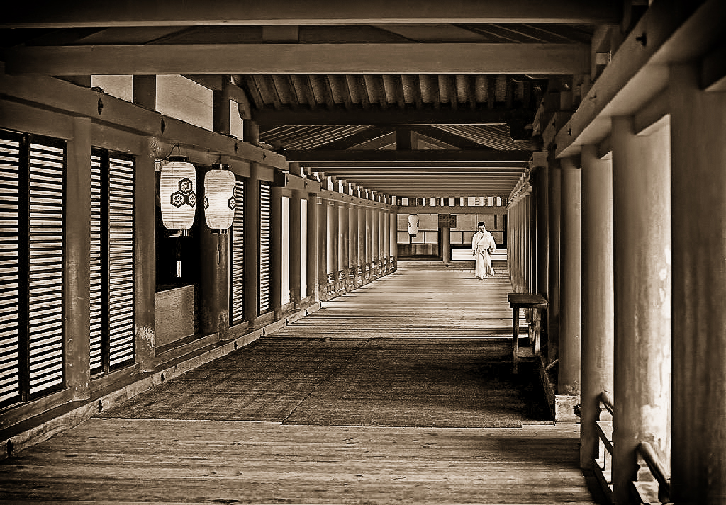 I really like this. The perspective is wonderful and the colors allow the man's white attire to stand out as the picture focus point. Also, the yellow lights nicely balance the man's image. Well done!