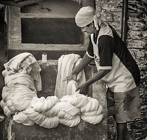 However, a few things bother me a bit. The contrast seems a bit high which causes the interesting folds in the fabric to be lost. Also, I find that I want to see more of the man's legs which are lost in the darkness. I attempted to address these things. What do you think? It's certainly not a better image than yours.... just different.
