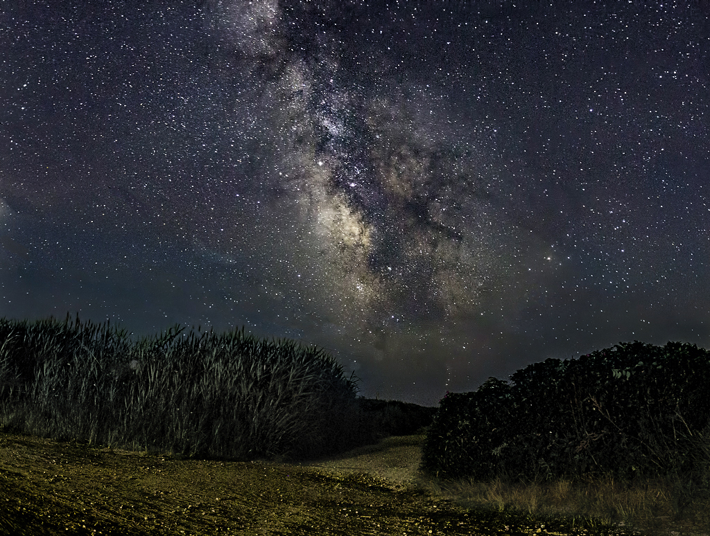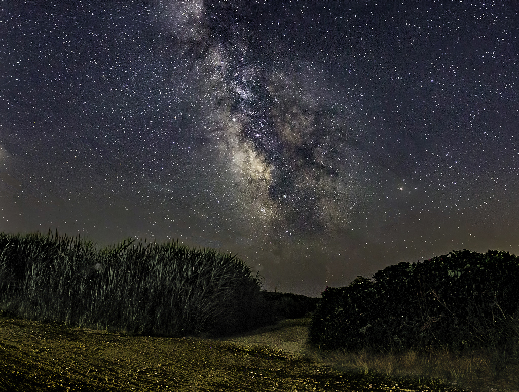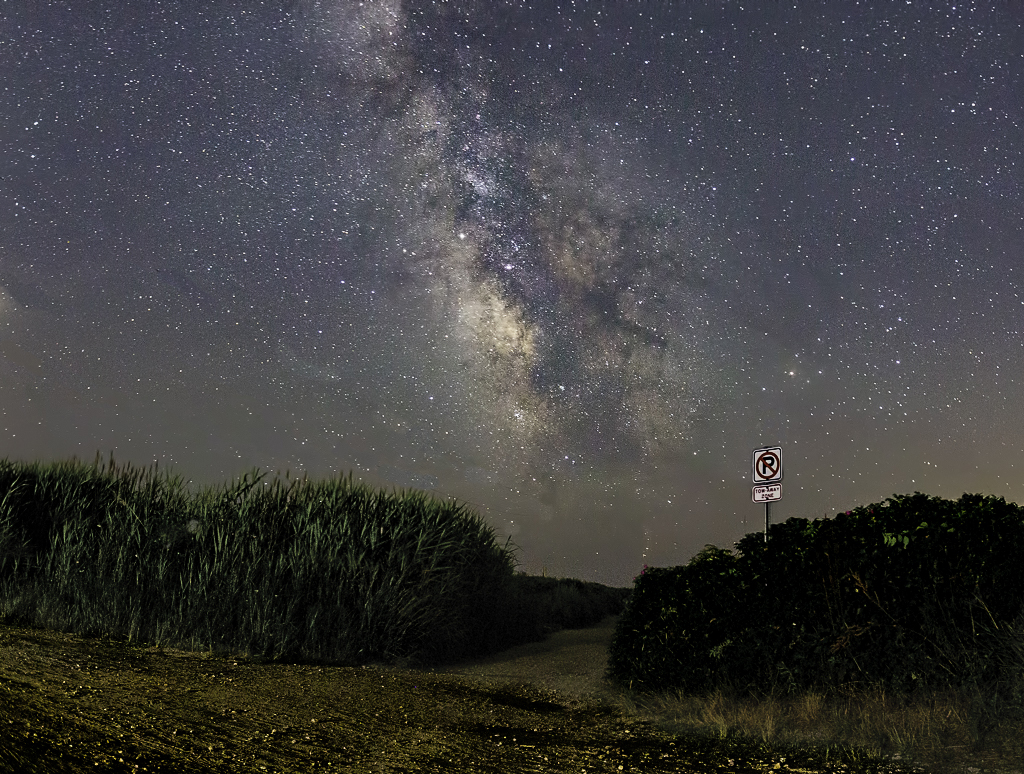 Richard, I tried removing the No Parking sign and lightening the beach path a bit. Those two changes seemed like they were working, but then something else was needed to complement them. Thus, I darkened the sky a bit to make the stars stand out more and removed some saturation from the grasses since colors aren't very intense in the dark. What do you think?
