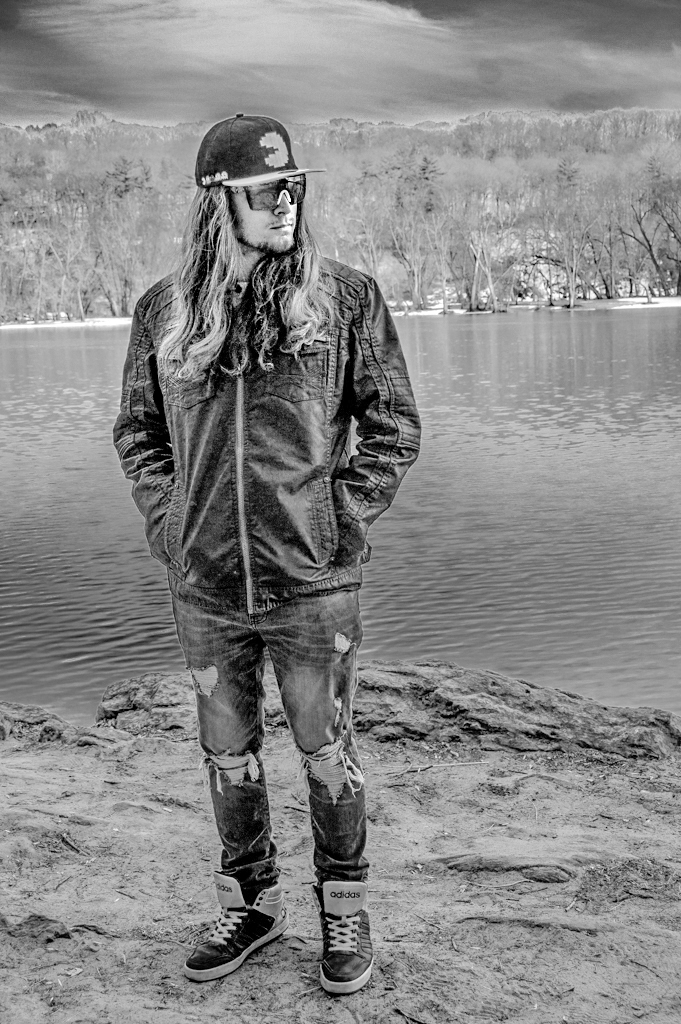 I really liked where you went with this, but I wanted to see if I could make the man even more prominent while, simultaneously keeping detail in the background. I started with the original and, like you, used Silver Efex Pro 2 to convert it to B&W. For the conversion I used some of the filters to bring out a bit of the red (e.g., his shoe laces, etc.). Then I took the image into Camera Raw and played with the background, paying particular attention to the sky.