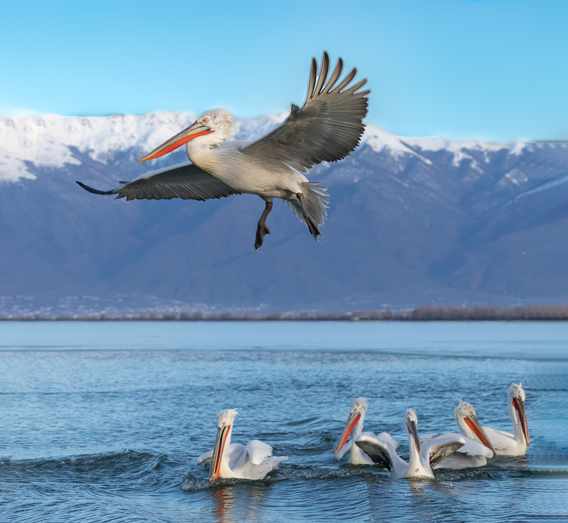 Terri, welcome! You did an amazing job catching the flying pelican with the other five below. The positioning of the birds (both the one flying and the five on the water) makes an excellently balanced composition. Very nicely done.