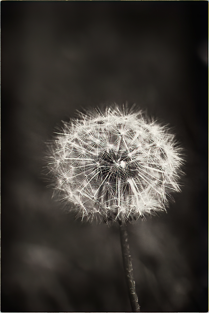I really like how you've cropped this. At first I was caught in the staid "rule of thirds" and "don't put an object in the center". Then I got past that and simply appreciated how the extra room at the top of the photograph seems to draw more attention to the blow ball. I think the plain background is what makes this work so well.