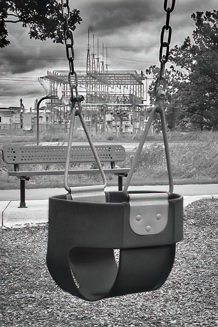 LuAnn, your image brings this issue to light in a wonderful and somewhat subtle way. The idea of a baby's swing in the forefront of a power station is brilliant.