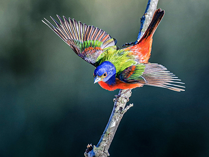 However, I would like the background of Original 2 to be a bit more dramatic than it currently is.... without, of course, distracting from the primary subject. Also, I love vivid colors. Thus, I would like the Painted Bunting to be even more vibrant. To that end, I played with it a bit in Photoshop. Your thoughts?