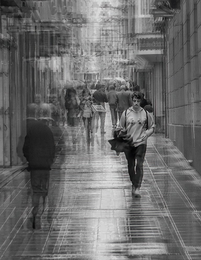 As with many photographs that I find especially appealing, I played with it a bit in Photoshop and Camera Raw. I tried to reduce the exposure as Emil suggested and also attempted to make the man stand out even more from his surroundings.