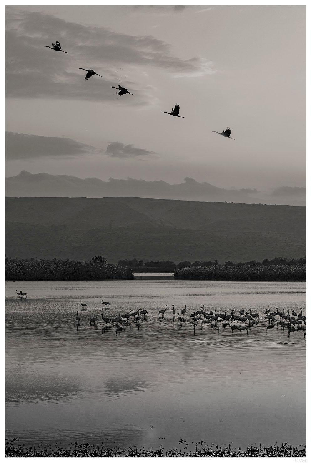 However, I thought the water and the wading birds added to the image. So, I played with it a bit (but didn't bother to change the flying birds' direction/spacing). I was considering some additional cropping at the bottom to eliminate the reeds and a bit of water, but I didn't do that. What do you think?