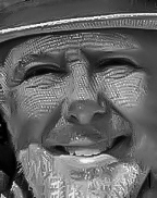 I also like the idea of a closeup of his face. But, as someone mentioned, it looks a bit sinister. So, using the original I attempted a different crop. There wasn't enough resolution to do a decent job but maybe my attempt will give an idea of it.