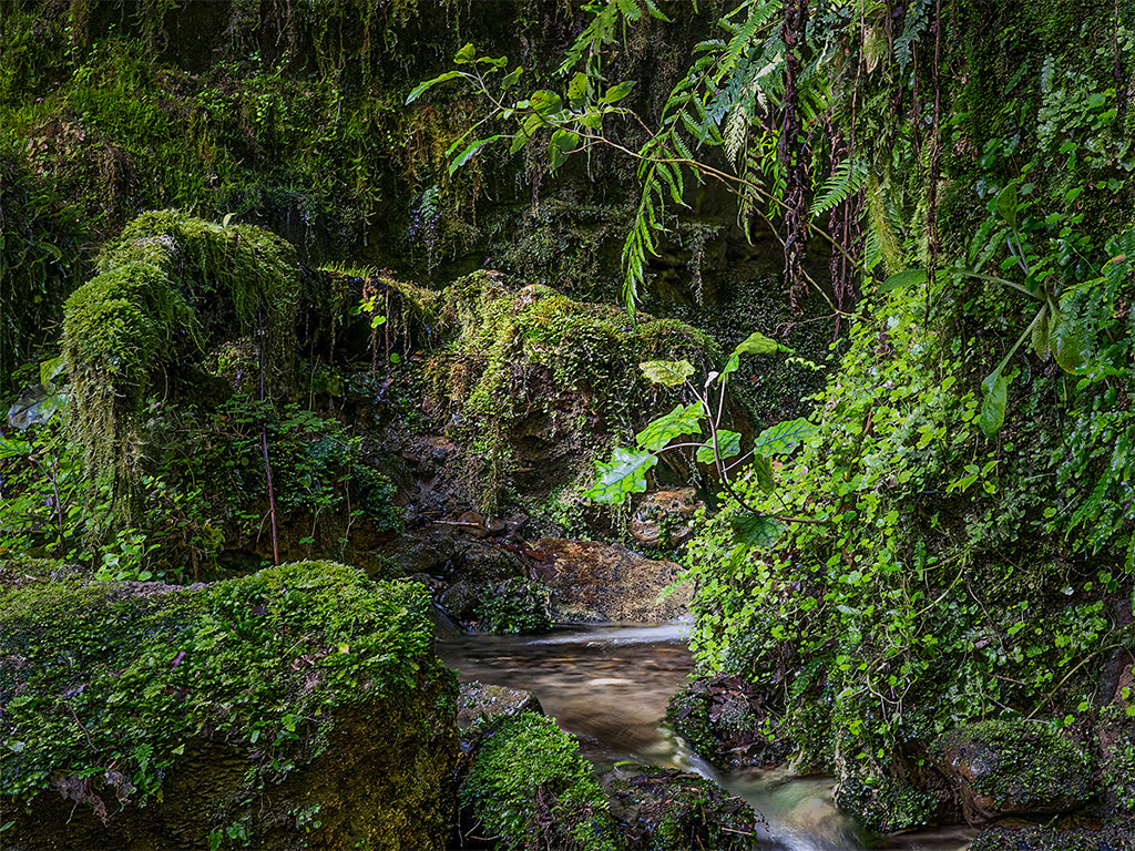 Like Candia, I really like intimate landscapes and you've clearly found a wonderful one! Since I find your image so appealing, I wanted to play with it a bit in Photoshop to see if I could modify the lighting to make it even more intimate. Using the radial gradient and the brush masks, I darkened the outer portions of the photograph and did a bit of editing on the lighting of the stream and intriguing background.