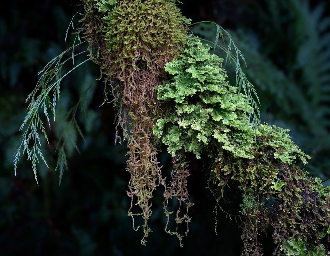 This is a wonderfully intimate image. I love the interesting stems flowing down to the left of the branch. And your post-processing of the moss worked beautifully. I played a bit with your image in Photoshop and ACR. Frankly, I prefer your image to the one I came up with since mine looks manipulated to me. Nonetheless, I'll include mine anyway.