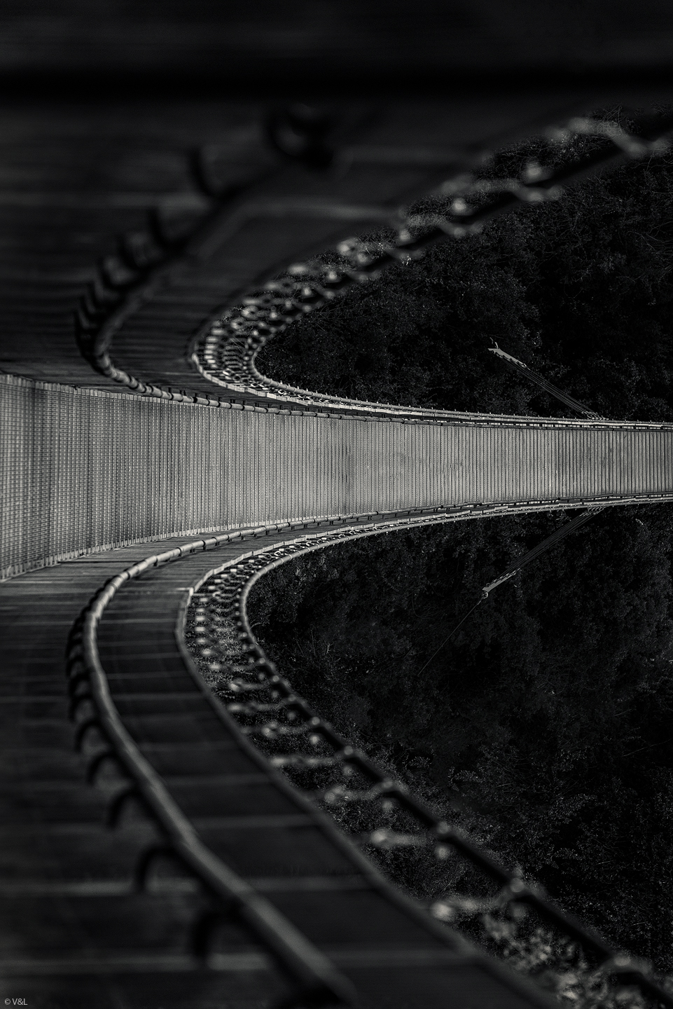 Emil, this is wonderful! (I think you're being influenced by LuAnn's moody images.) I love the curves in your photograph as well as how they disappear into the darkness.
