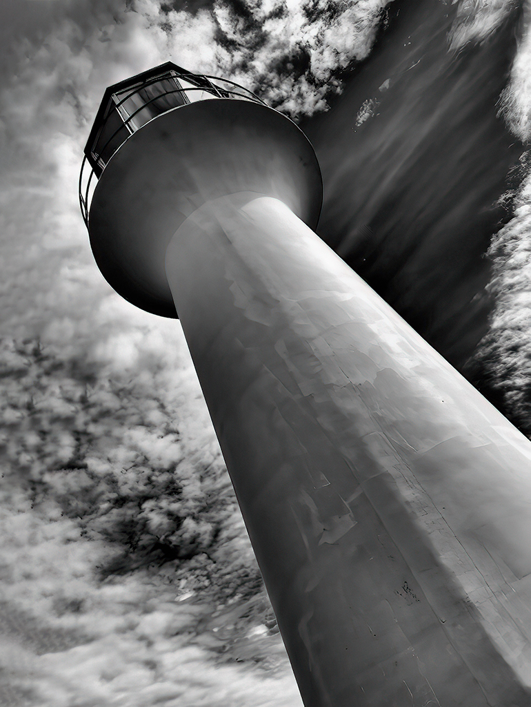 Bunny, what a great angle for your image! It really makes it different (in a positive way) from other lighthouse photographs. Your B&W conversion is "spot on". Nicely done!