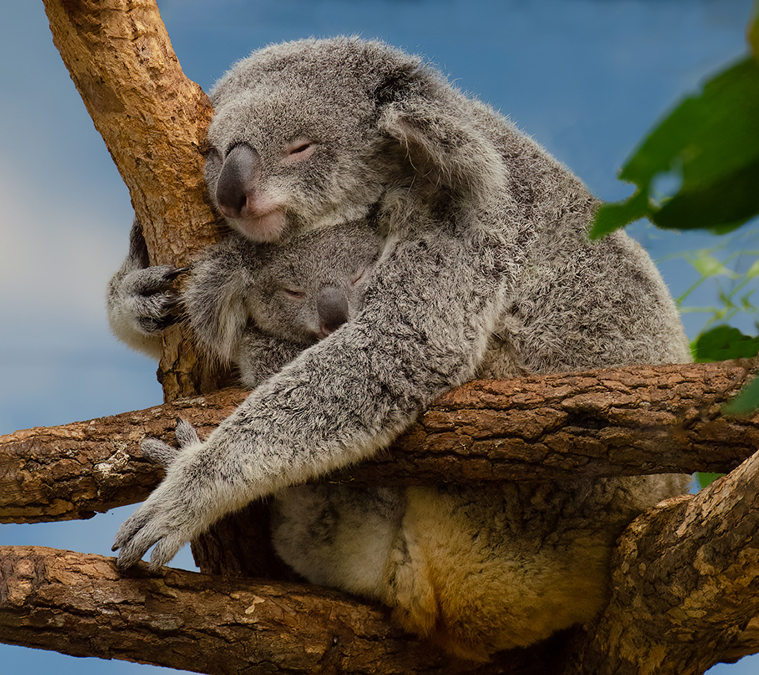 I like the balance provided by the leaves on the right. However, to me, they seem slightly intrusive. So I moved them slightly to the right. Then I extended the branches on the left so that the cut ends were no longer in the frame. Finally, I added just a bit of additional headroom above the mother. Your thoughts?