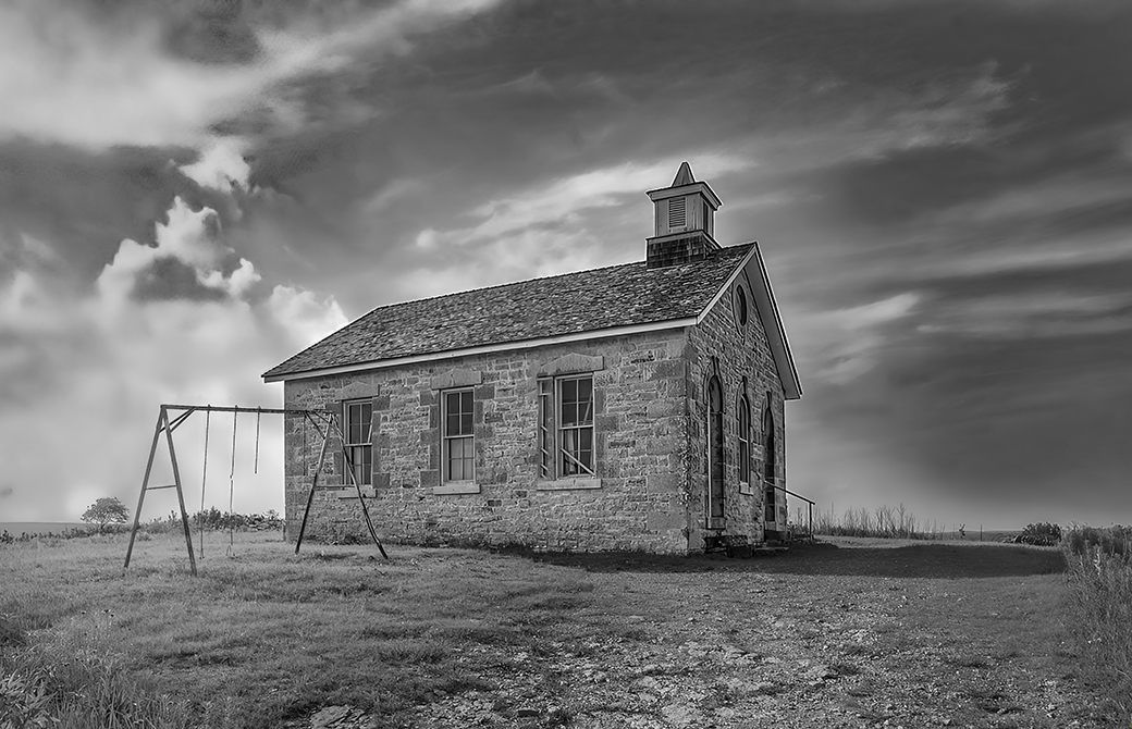 Beautifully done, Emil! You've really captured a feeling with this image. I never attended a one-room school like this one appears to be, but my father did. Your posted image is outstanding. The balance with the tree, swing, and building feels just right. I also like the image that you posted in response to Bunny's comment and decided to play with it a bit. I kinda like what I ended up with, but really like your posted version better. Your thoughts?