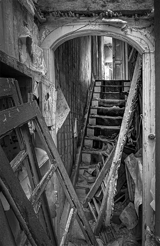 What a fascinating image. I love the view up the stairs and through the door. Intriguing!