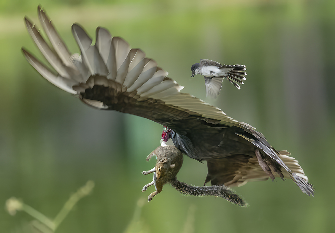 Sophia, this is truly an amazing image. I love the fact that you captured the small bird in addition to the turkey vulture. Flipping the photograph works well. It was irresistible... I had to play with your image. I'm not sure what I did, nor do I think it's better than what you did. Nonetheless, I've included it.
