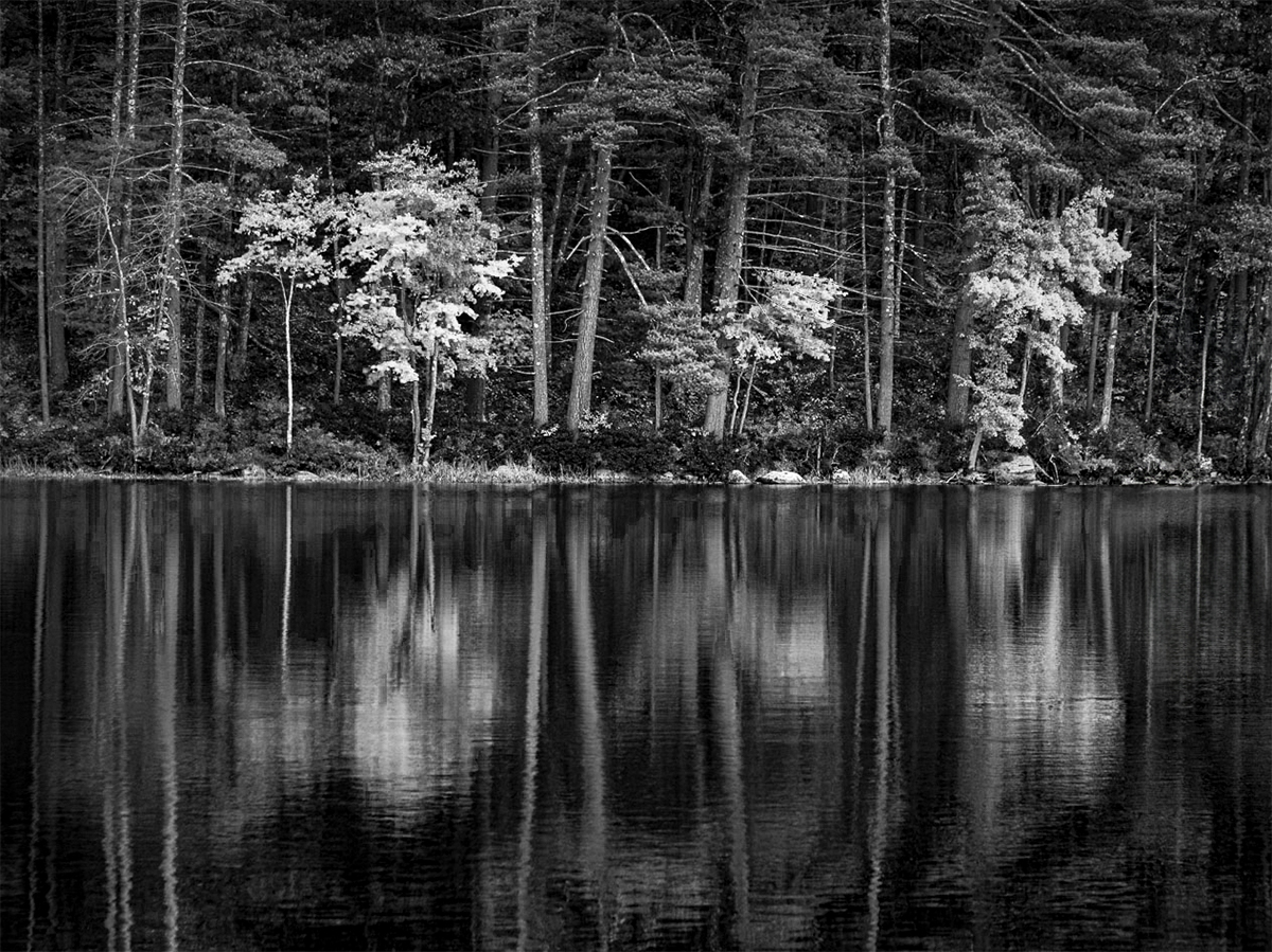 I played with your image in PS and ACR to see how it might look with the three trees highlighted as the center of focus. My modifications included removing the small, bright tree on the far right, cropping the top, and slightly altering the light and contrast of the trees and their reflections. Your thoughts?