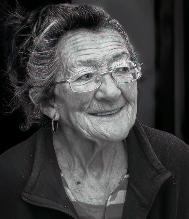 I love portraits of interesting people, and David, you definitely captured one! Her face is so full of life... wonderful! Monochrome can often bring out the character in portraits, which yours does. Well done.