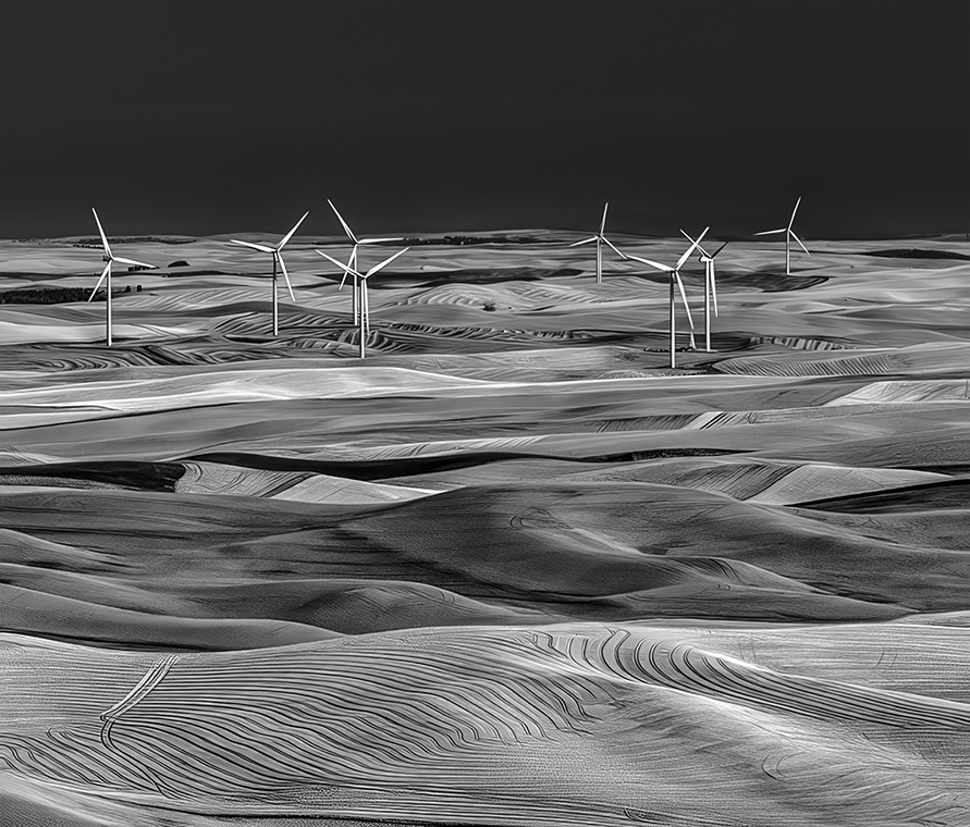 Emil, you're a magician! Every photograph of the Palouse (until now), showed only the beautiful rolling hills and crops. You have somehow included the windmills and made a fantastic image. Of course, I had to play with it a bit in Camera Raw and PS. I slightly modified the lighting and contrast, cropped a bit of the dark sky, and removed two of the "five-bladed" windmill (which I know is actually two windmills... smiles).