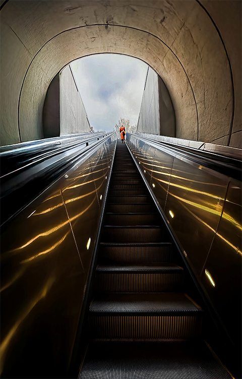 Sophia, I've been riding the Washington Metro since the first 4.2 miles opened in 1976. Your image really does it justice! I love the leading lines that direct my vision to the person at the top of the escalator. That direction is further enhanced by the sky. Very well done!