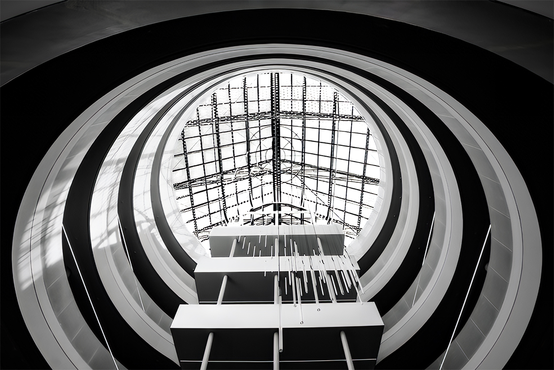 Chris, you have a very good eye! This is a captivating photograph. I love the symmetry, both in the building and the sky/grass. And, your handling of the grass is outstanding. It's a reflection of the top of the building. Well done.
