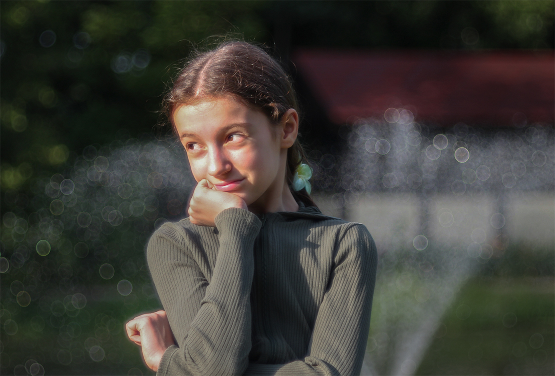 Natalia, she is certainly a cute girl, and her expression is wonderful. I especially like her hand positions. The bokah is perfect, giving the dreamy effect that matches the girl's expression and pose. Beautifully done.