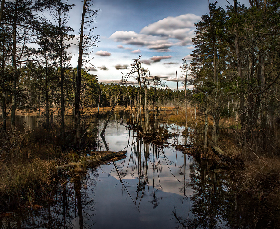 I played with your photograph in Camera Raw to see if I could draw the viewer's eyes to the small island in the center of the image. I did my edits by slight cropping and significant modifications of light and contrast.