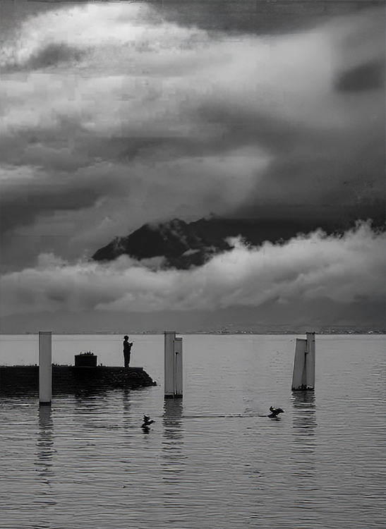 Long ago, I read that viewers are more comfortable seeing an image that "moves" in the same direction they read. Over time, I've found that this is true for me. Thus, it feels more natural for the ducks to move and the fisherman face to the right. Of course, this is NOT a "rule" and sometimes facing/moving to the left is a useful way to add tension to an image. |