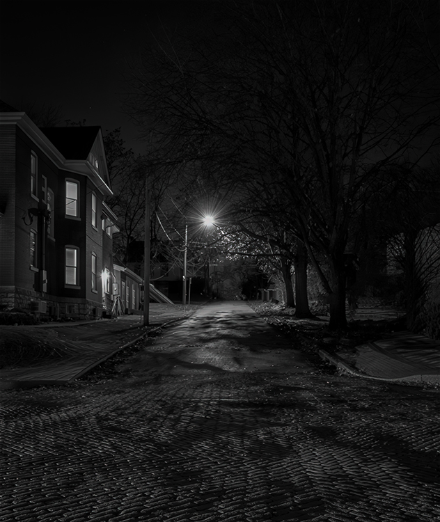 I wanted to see how it might look even darker, hoping that the house lights and the distant street light would "draw the viewer in." What do you think? Too dark?