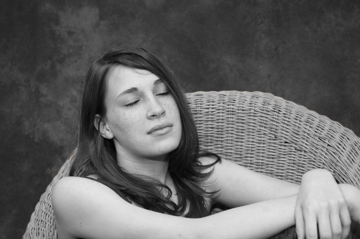 Nice expression. Nice composition although I would have liked to have seen all her fingers and right hand. My suggestion would be to darken the background to make the subject stand out more. |