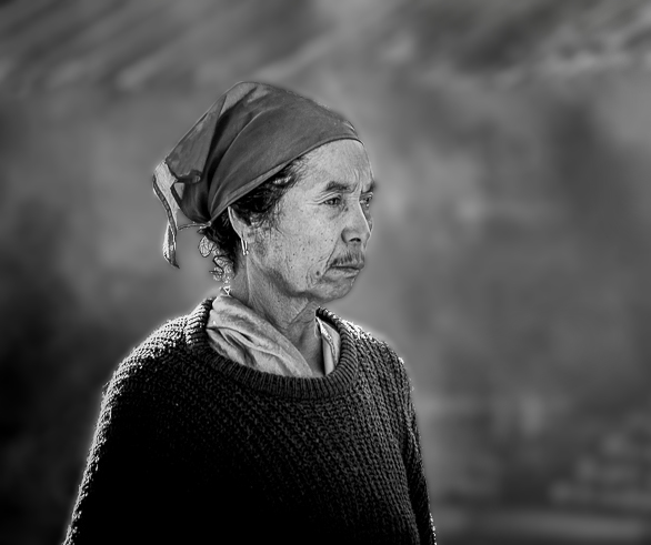 I like the mono version much more than the original color photo. I agree with Tom that the photo needs to be cropped as there is too much background area. In my revision I did not crop as much as Tom but also darkened the background and also blurred it some and also brightened the face. |