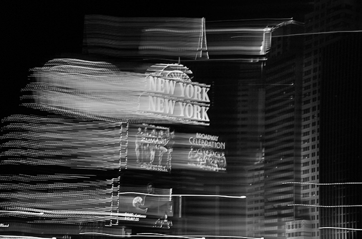I like the creative qualities of the photo but suggest that perhaps the bottom of the photo adds little to the image nor does the large black area in the top left of the photo. In my suggested revision I cropped those areas, lightened the building and darkened the NEW YORK sign. |