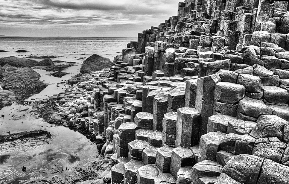 I like the photo and think it could work well in either color or mono. I started with original 1. I only work in Photoshop and first straighten the horizon. I then cropped but left as much of the river inlet in the bottom left as I felt this had a very interesting leading line. I then selected the sky and darkened it. Then the same with the ocean and river. And then the same with the rocks. Then I converted the photo to mono and used burn and dodge tools selectively throughout the photo. |