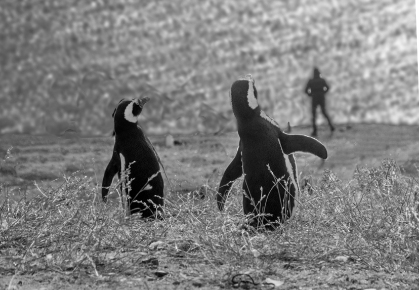 I feel that the water is too bright and should be darkened. And, I like the suggestion of have just the two birds and the one human figure. |