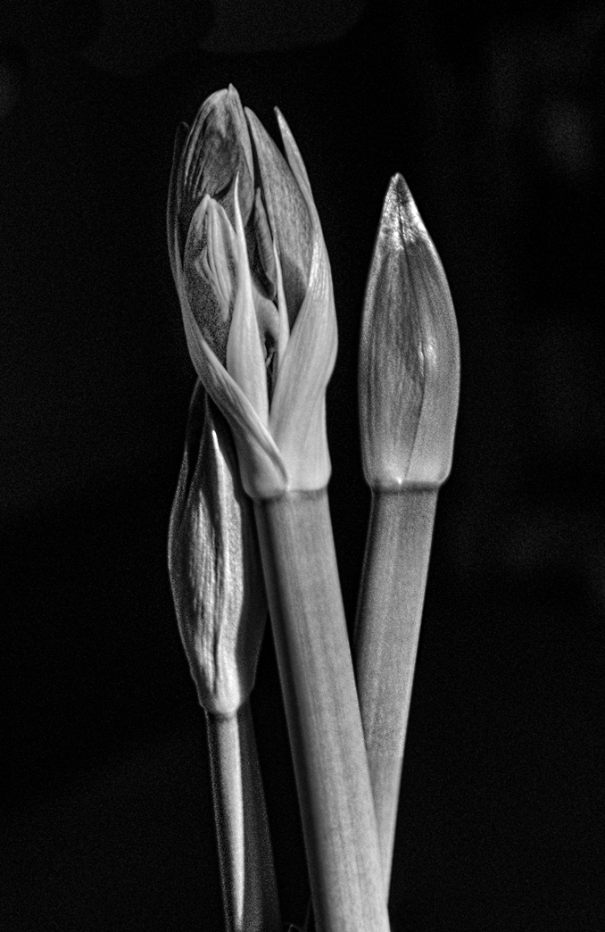 I like the image and much prefer the mono version. In my version I first tilted the image counter clockwise, included more of the stems, sharpened the two smaller stems separately which I think helped reduced the softness of the far right stem, and finally burned in the stems to reduce their brightness. |