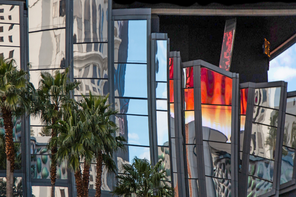 An interesting image but I feel the image is about the building reflections and that the lips don't quite fit. In my revision I brightened the image and especially the trees. Then I selected most of the buildings and made them taller and thus eliminated the lips. |