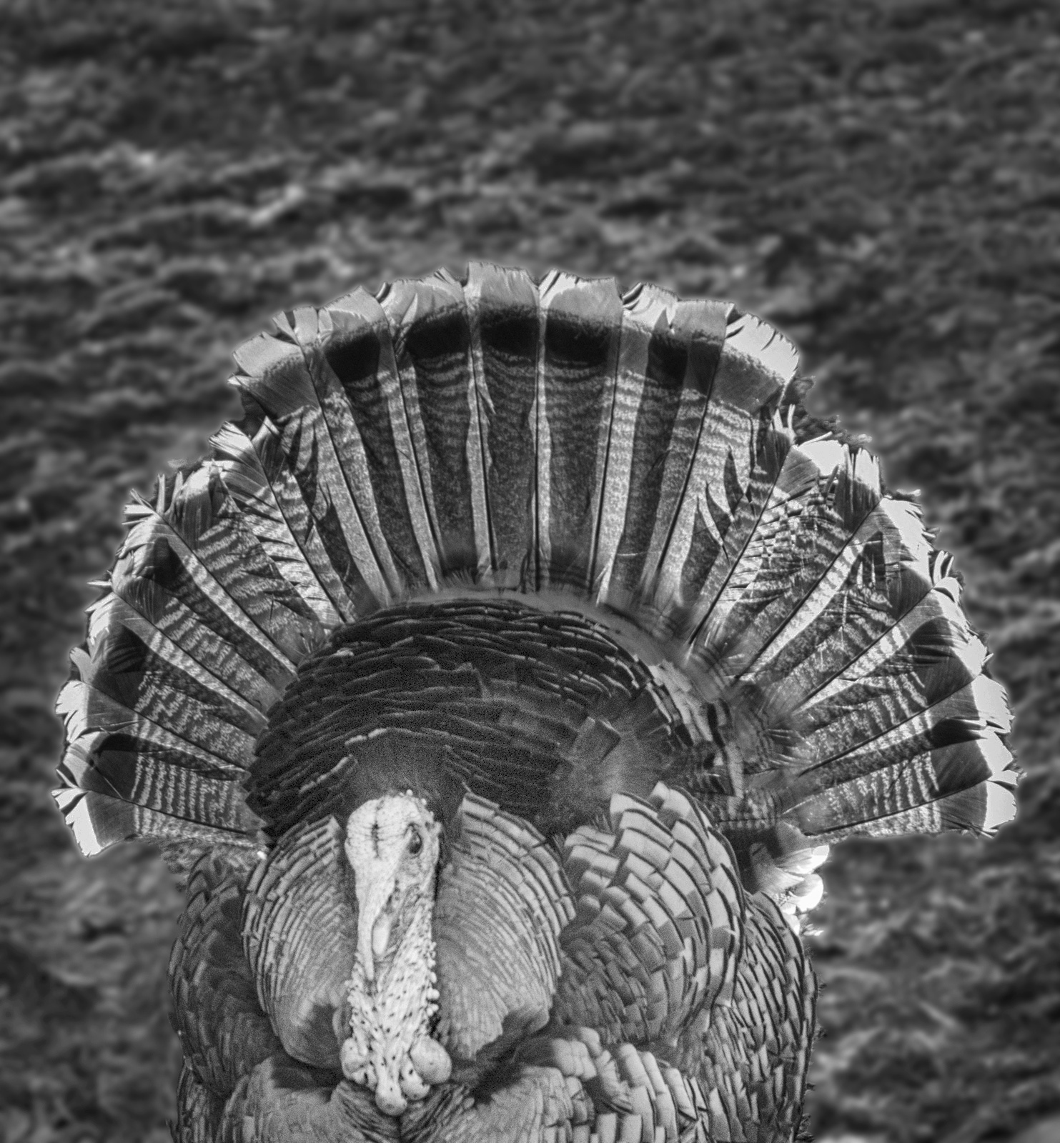 I prefer the straight mono version as I feel the sepia version emphasizes the features too much. In my revision I darkened the feathers and blurred the background. |