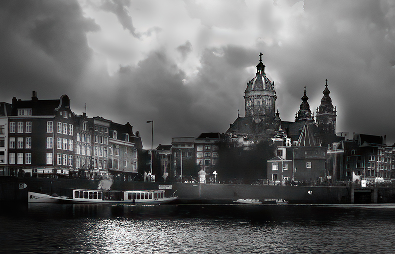 To me the two images don't quite match. The one on the left is like somewhat coming out of a fog but the central image has no fog and is quite sharp. I also very much like the original color image. |
