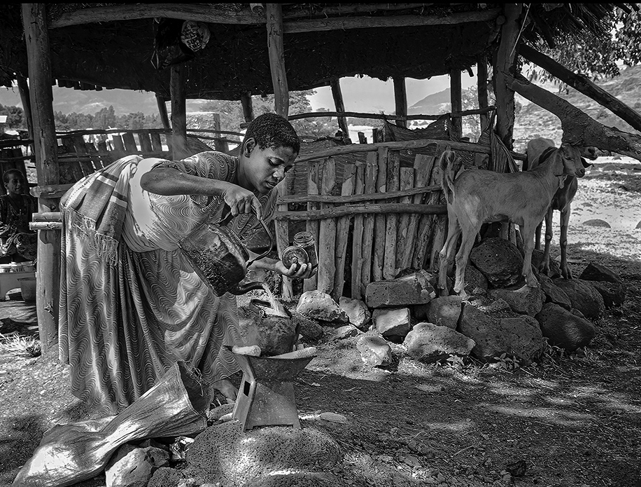 I like both the color and the mono versions. Both have a very nice composition with the upward look filled out with the surrounding leaves. I have no suggestions for improvement. |