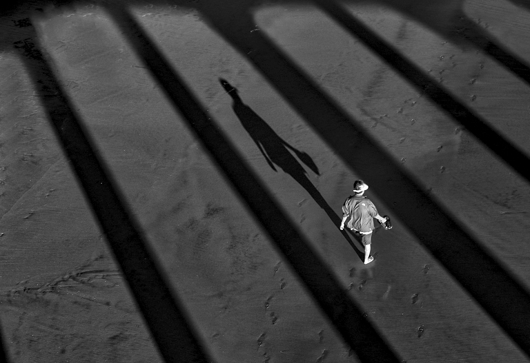 Sunhil, I like your mono converted image much more than the original color. My preference would be for a tighter crop to emphasize the figure and also so he is not so centered. In my revision I also added a slight increase in contrast. |
