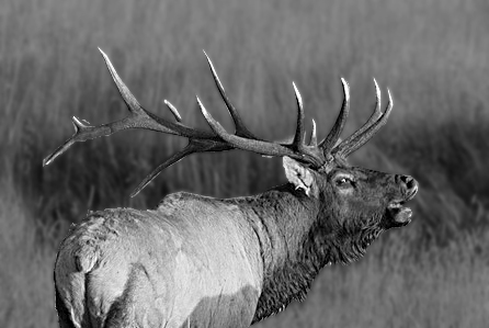 A great image, captured at a great moment. It is unfortunate that the rear of two elk (bottom left and middle left) spoil the composition. I tried to improve the image by cropping out everything but the head and antlers of the bull but my awkward attempt is lousy. I have no other suggestions. |