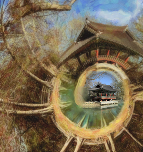 I like the image except that the sharp pagoda image is so centered. My eye is drawn to just that center area. I suggest you consider cropping some off the right side, the bottom and enlarging the area above the sharp pagoda to add more interest. |