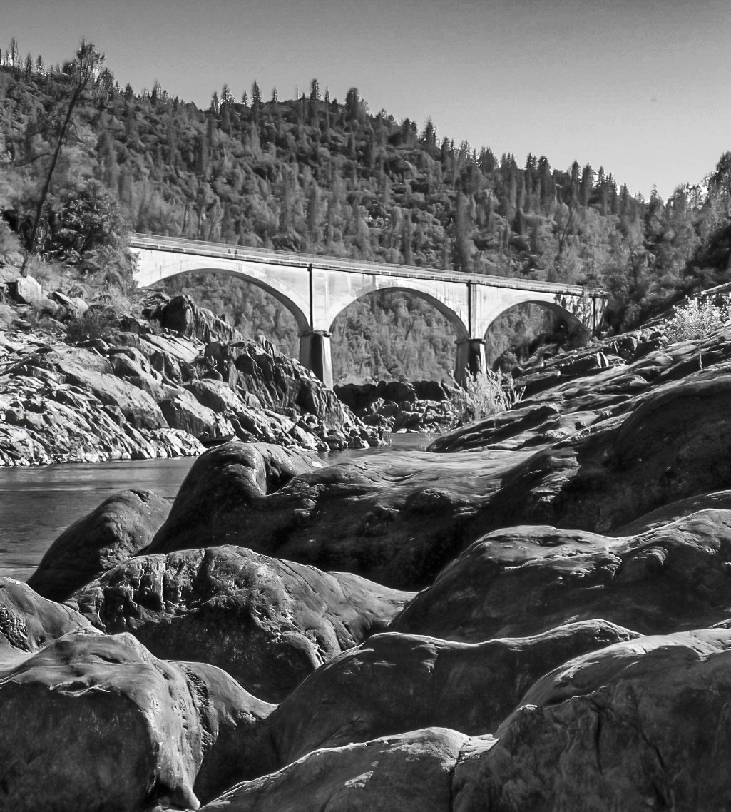 A very nice image and conversion from color. But, to me the rocks seem overpowering so in my revision I wanted to feature the bridge. So I cropped much of the rocks from the bottom and right side as well as some from the sky. I would have liked to have seen more of the river (probably easy to say but difficult to do). |