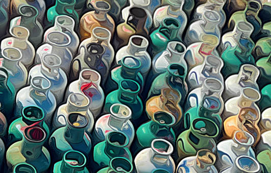 I like your image - the bottles, the table top and window are all great. But, to me, the backs of the chairs and the extension cord in the window are distracting.