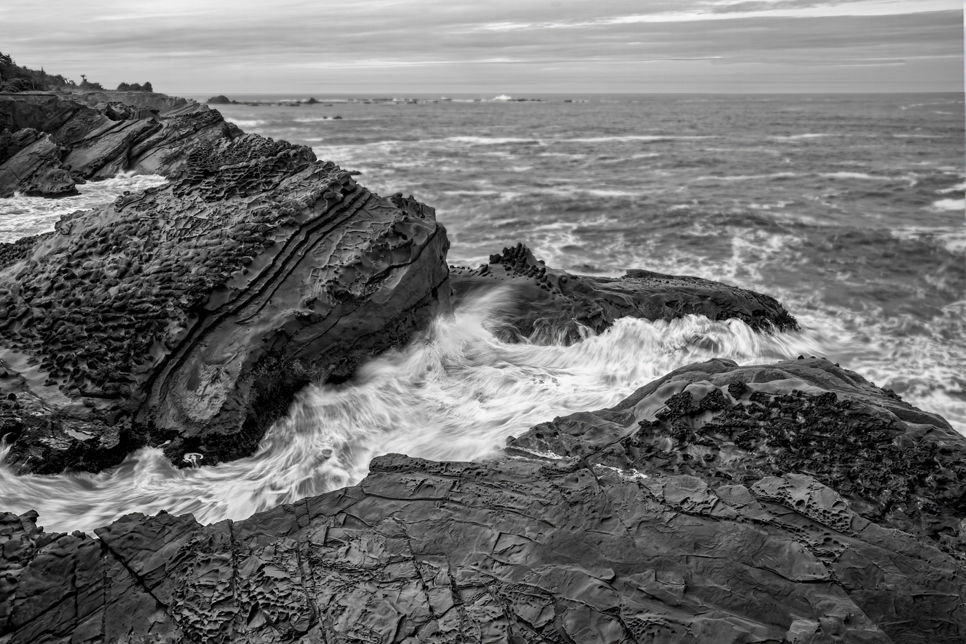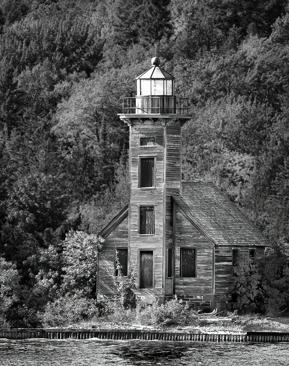 I like the image and the conversion from color. My preference is to make the building stand out more so in my revision I brightened and sharpened the building. Then I darkened and slightly blurred the background. And, I also darkened the water. |