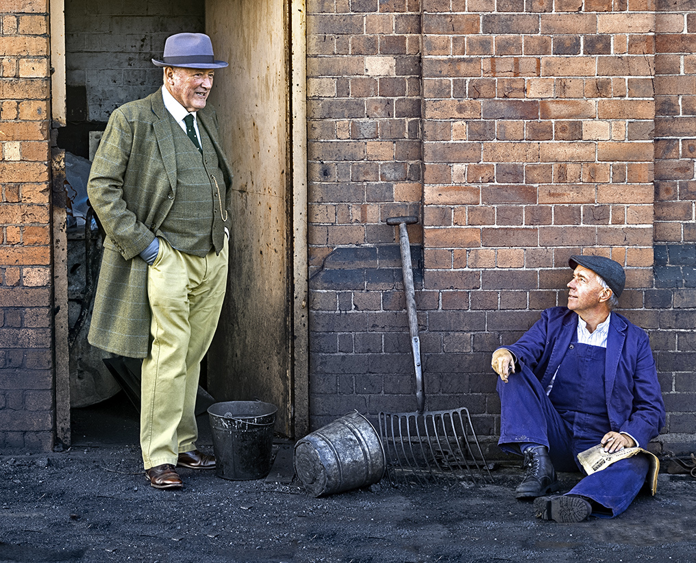 I like the image, the expressions and the overall composition but feel it is a little too bright. In my revision I eliminated the single rail and darkened the overall image, especially the faces. |